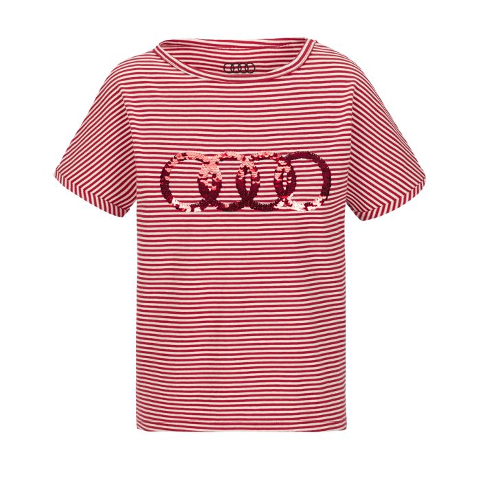 Modisch voll im Trend liegen Ihre Jüngsten mit dem Audi Ringe T-Shirt mit glänzenden Wendepailletten, die sich weich